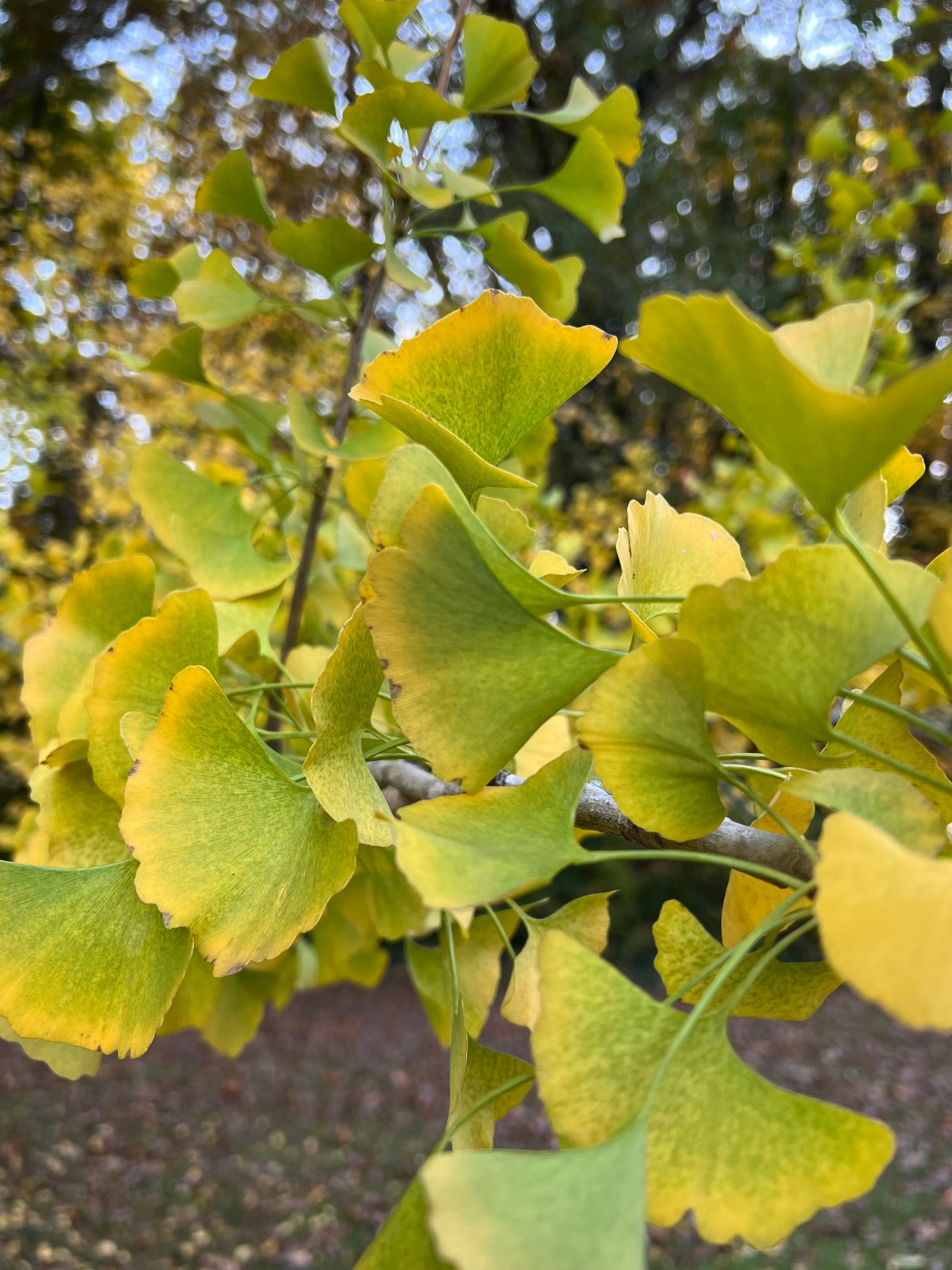 Gingko leaves caught mid-color change. We had lovely fall color in Raleigh this year!